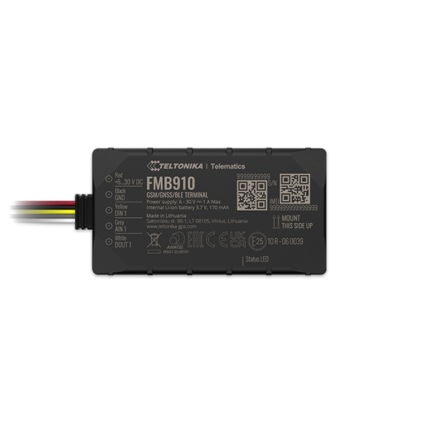 En outre, le FMB910 intègre la technologie Bluetooth. Elle permet de connecter des capteurs sans fil, des balises ou d’autres accessoires compatibles. Il dispose également d’entrées et de sorties. Celles-ci servent à connecter des capteurs externes ou à contrôler des équipements, comme un relais de coupure moteur.