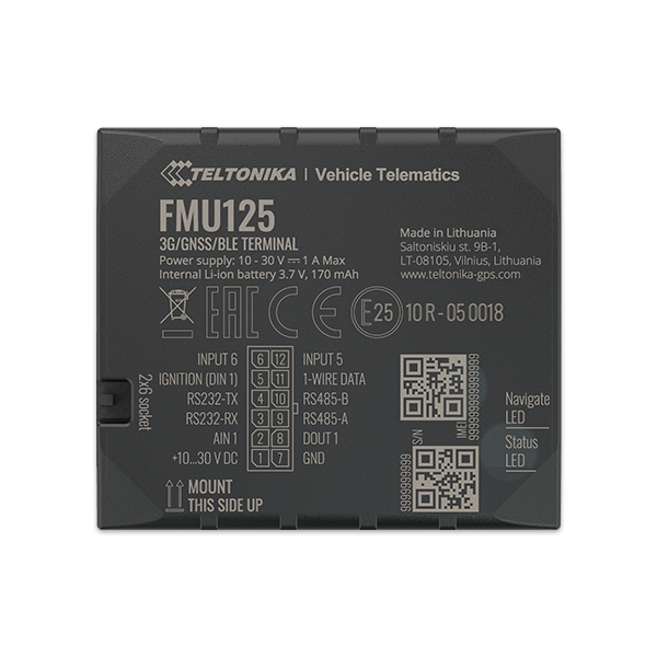 Le Teltonika FMU125 est un traceur GPS moderne et fiable. Il permet le suivi en temps réel des véhicules avec précision. Grâce à la technologie 4G LTE Cat M1, il offre une communication stable et durable, tout en consommant peu d’énergie.